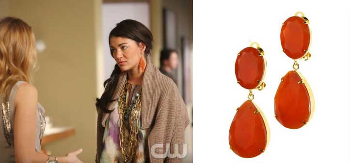 One of our favourite looks from Season 3 is Vanessa's Catherine Malandrino maxi dress combined with Siman Tu's aqua glass necklace. This stunning piece brought out her blue eyes and helped her win a little academic war she fought with Blair. We do love our Blair, but Vanessa had an advantage this time: again it was Siman Tu.
